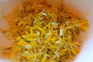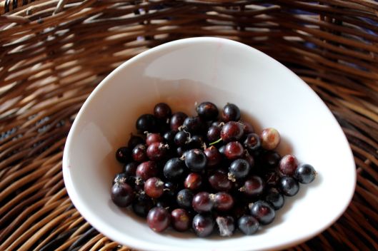 Breakfasts on the weekends are often the best meal of the day here at cabinorganic. If it’s just me, I’ll enjoy a whole grain hot cereal with some dried fruit thrown in. When a friend is here, I put a little more time and effort into the weekend meals. It is also nice to have someone to try out my new recipes on! This morning we had poached local organic free-range eggs (from Dreamin’ Green Farm) and some locally-raised bacon, along with a Wild Berry Salad made with all wild ingredients or produce from our garden (not including the toasted almonds). The Potted Saffron Brioche on the side (with Swamp Red Currant Jelly) gave the meal a creative and decadent twist. The wild berries in the salad were so fresh that we couldn’t resist cracking open a bottle of Saignee, a fruity Canadian rose wine that we picked up at the Silk Scarf Winery (highly recommended!) on our recent trip to Summerland, BC. (…where we stayed in a B&B at a working vineyard. But that’s another story…).