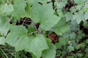 Ribes triste is a small woody shrub, up to three feet tall, with three-lobed leaves. Unlike its relative, the gooseberry, this shrub does not have thorns. Small red berries grow in clusters and are very tart, making them excellent for jams and jellies. Berries are ready for harvest July through August.