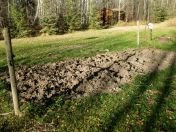 I would like to show you the vegetable garden. When we bought the cabin last fall it was just a little postage stamp of a plot with some potatoes left behind. We dug these up in October and they lasted us until March.