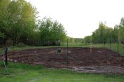 Once tilled, I mapped out a Medicine Wheel design using mulch for the pathways. I added some plants and sowed some seeds. Then I spent an afternoon pounding in large stakes for the fence. My budget was very limited so I used what I could find on the land. I also found some rusty barbed wire fencing in large rolls around the property. I carefully unwound these and wrapped these around the poles, using wire to fasten it to the stakes. I did two rows of fencing, one on top of the other and wired these together. This was tricky as I did this on my own, holding the fence in place with my head while wiring the fencing together with needle nose pliers and being careful not to get scratched with the rusty wire…