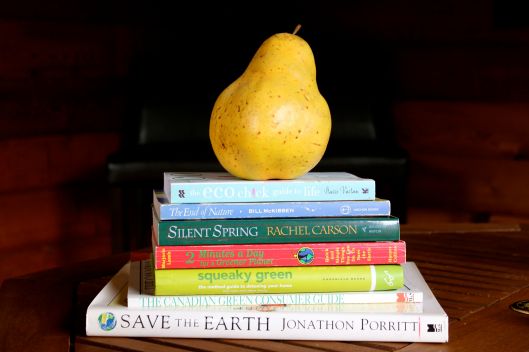 I am currently reading Walden, I have read Silent Spring (and wrote a paper on it in university), the Omnivore’s Diet is at the top of my list (I am looking for a second-hand copy) but I have seen two excellent online lectures by Michael Pollan (one on TED.com and one on youtube), I have not read Hot, Flat and Crowded, Go Green or Live Rich but pledge to do so. Point: 0.5