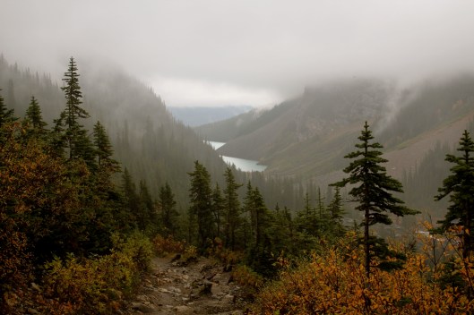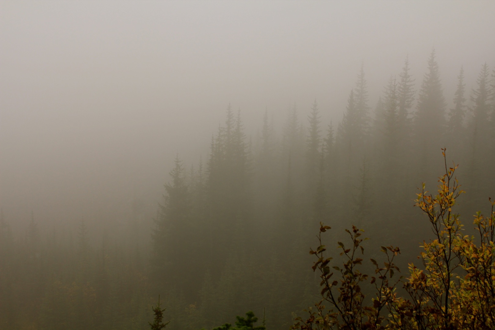 The last mornings have been foggy, giving our walks on the trail a dreamy quality. Earlier in the week, Lucy and I encountered a large buck moose, just to the right where this picture was taken. It was on a misty evening and the moose and I watched each other for quite some time until Lucy (oblivious and sniffing around in the tall grass) finally noticed the moose and went running towards him. She didn’t chase him far, the way she does with the deer. Instead, she seemed more sober and respectful of this great majestic animal. It was a magical encounter and I regretted leaving my camera at home on that particular evening as I would have been close enough for a good shot.
