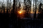 This morning was one of those memorable mornings: mild temperatures (only -5 degrees C), a gorgeous sunrise over the lake just as we were leaving the cabin…