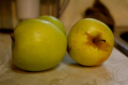 Add about 2 cups water and the lemon juice to a small saucepan. Peel apples and cut into small pieces and add to the water. Bring water to a boil and cook for about 2 minutes; then strain. Add brown sugar, cinnamon, nutmeg and walnuts to the apples and mix well.