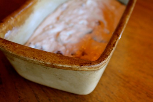 Grease a loaf pan and place batter in pan. Bake for 20 minutes or until golden brown. Cool slightly before turning out of the pan. Serve warm. Enjoy!