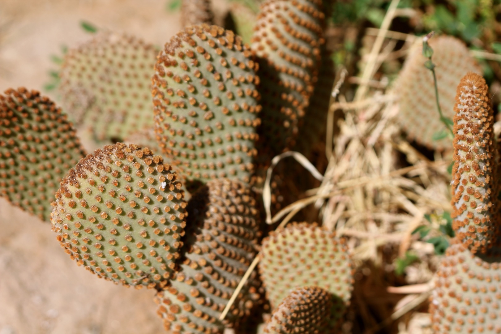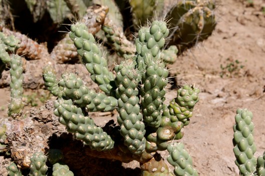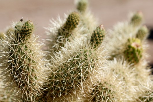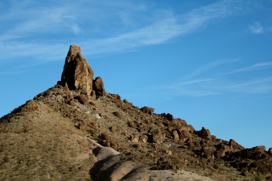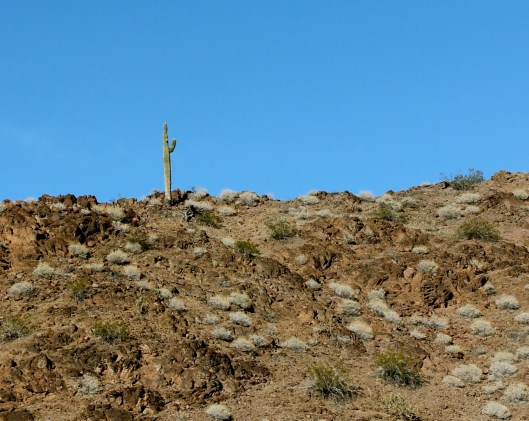 Below, a lonely cactus high on a mountain peak. (Taken from a moving vehicle.)