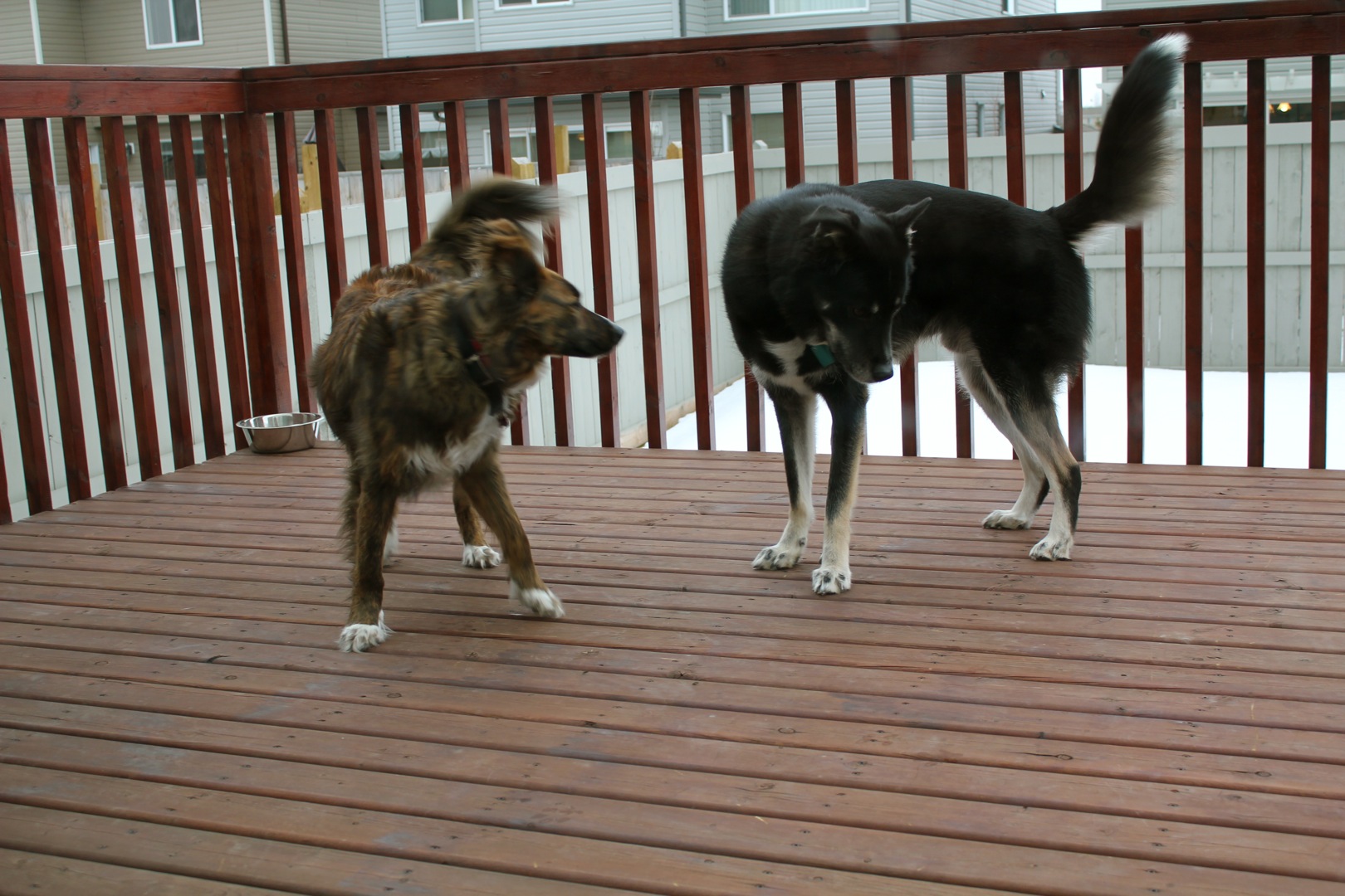 Today, we went to Buddha’s place in Leduc. Louise and I had a nice visit and Lucy and Buddha had a play date out back.
