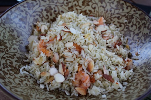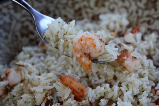I love going out for Thai food and it’s always the simplest accompanying dish that I crave- coconut rice! I found this recipe in a Martha Stewart magazine way back in September, 1994 and it has been a staple in my kitchen ever since. I usually make it plain to go with a curry but today I added some prawns to make this a complete meal.