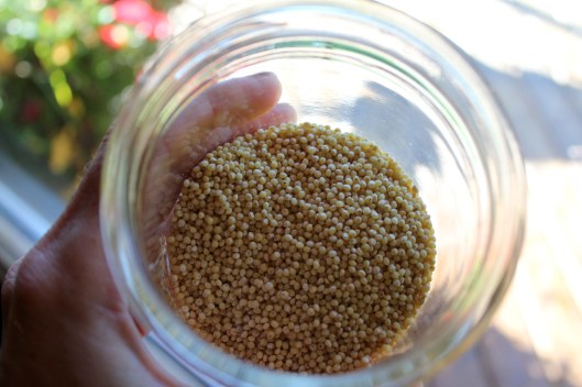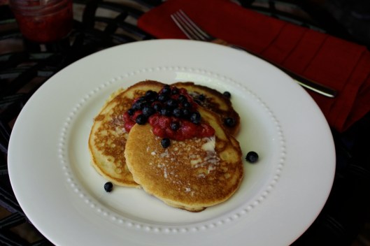 This year the Saskatoon berries in my backyard are huge and plump! B and I got on ladders yesterday and picked three full basketfuls. I froze them for smoothies and pies and made a small batch of tarts for immediate enjoyment. I like to freeze the berries one layer at a time on cookie sheets and then place the frozen berries in large ziplock bags. This way they don’t stick together or freeze into one large lump and I can easily reach in for a handful of berries any time for smoothies. Last weekend I picked Saskatoon berries at one of our many beaches here on Pigeon Lake. There were many ripe berries and as these ones were a little smaller in size, I decided to make this jam with them.