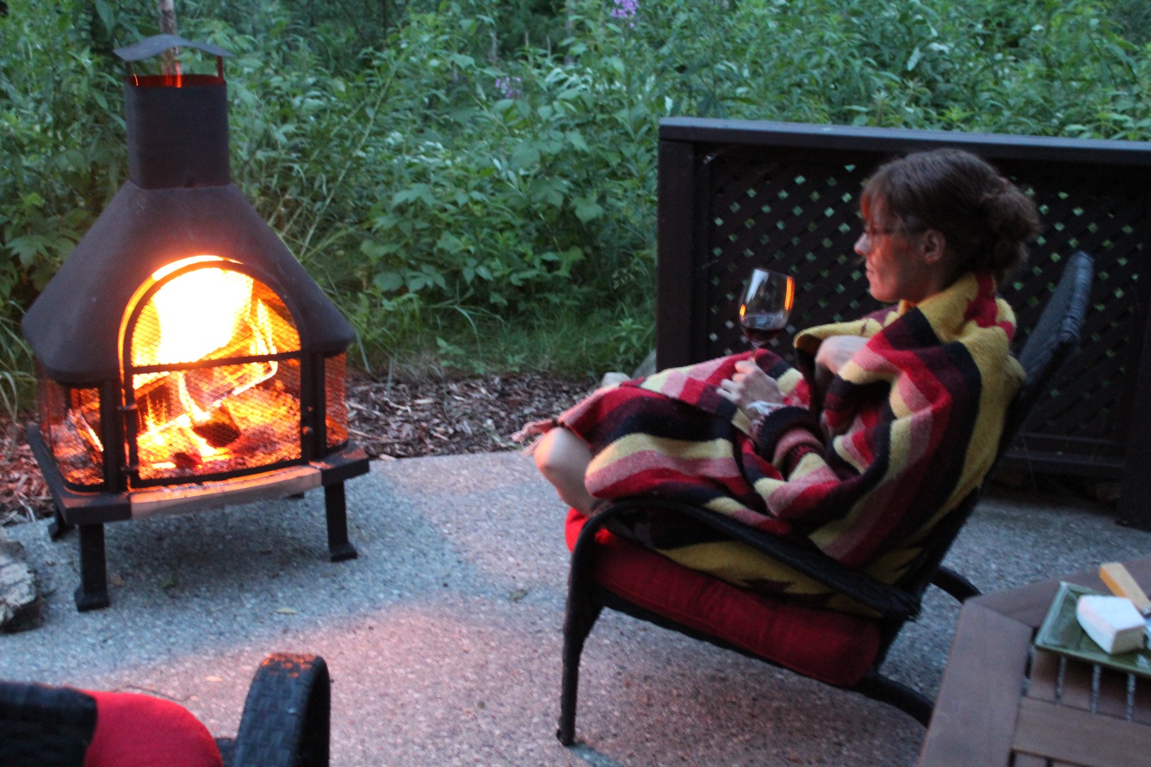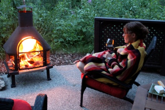 These improvement to the deck and patio area cost very little money and a reasonable investment of time, creativity and elbow grease. With just a bit of effort, we have transformed an open and exposed, uninspired area of concrete into a cozy outdoor room that we use constantly now for meals and evening fires.