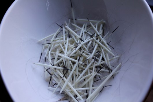 As we walked home I was wondering if I would be able to take out the quills myself. Last time Lucy was quilled, she was very jumpy and it took me almost two hours to trick her into letting me get close enough to pull the quills out. I was amazed and so proud of Lucy when this time around when she came right over to me and let me snip the tips off of the quills with a pair of scissors. Then she stood very still (she was actually trembling and probably in shock) while held her with one arm and quickly plucked out all of the quills from one of her legs with needle nose pliers. I gave her a few minutes to rest and walk around, then I called her again and did the other leg. After another short break I pulled the quills from her chest area and after a thorough body search found a few quills on the inside of her back legs.