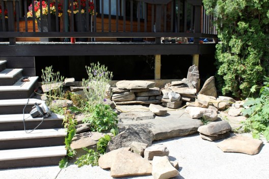 deck project, patio, patio project, planter box, rock garden, rocks, stain, stain deck
