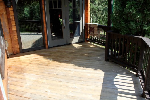 There was a curious opening in the deck rails. I was told by the previous owner that they had planned on putting a hot tub out in the woods there. There is also this ‘look-out’ area at the far end where the deck rails had never been finished and many of the slats were missing.
