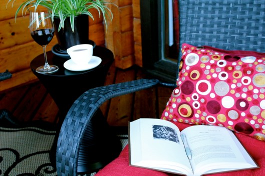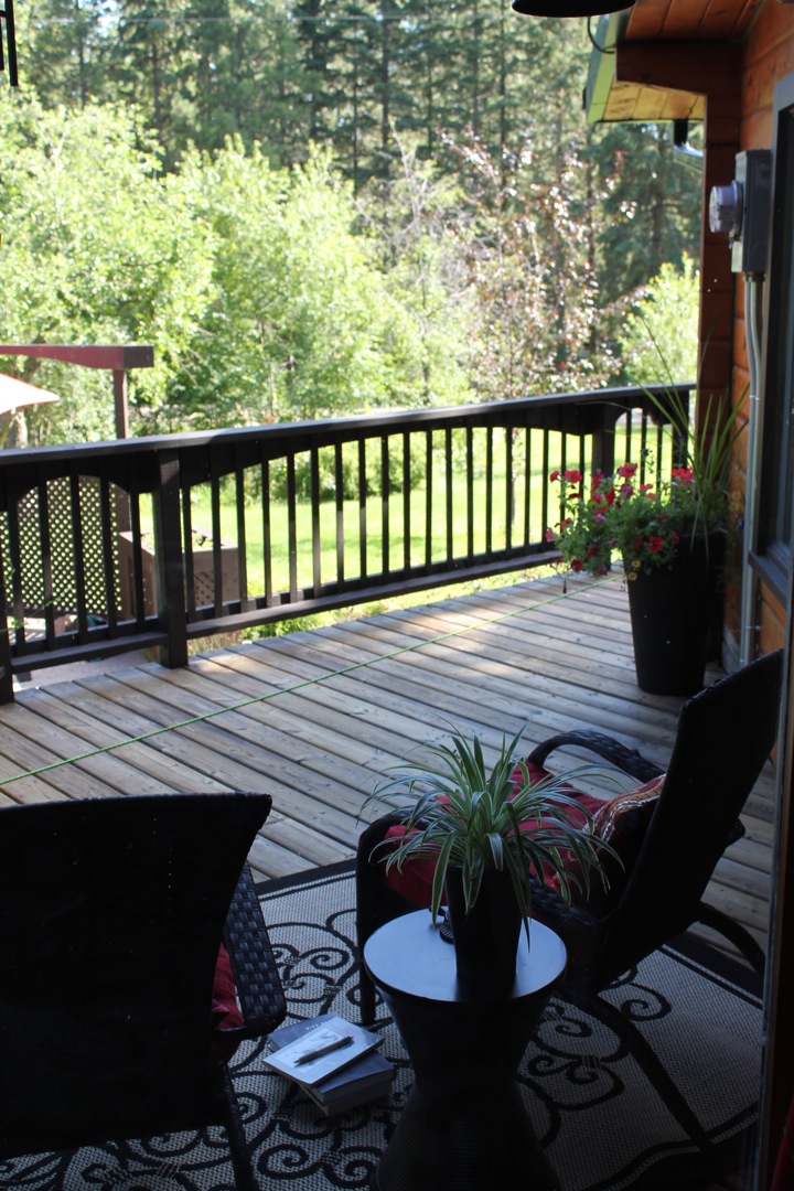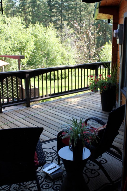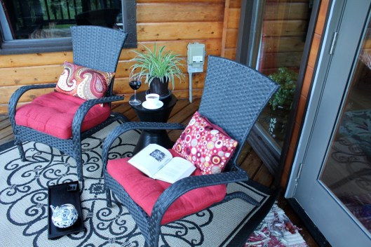 The final piece of the whole deck restoration puzzle is the reading deck. This space is located just outside of the dining room windows/door and it is a favorite spot to sit in the cool of the early mornings with a steaming mug of tea, facing east to watch the rising sun. In spring and fall, you can also see the glistening blue lake through the trees. As this part of the deck gets full sun from morning to mid-afternoon, it is the perfect spot to curl up with a good book (one of my favorite activities) during the cooler months. It is also a covered deck so Lucy and I sit out here during storms to enjoy the thunder and rain.