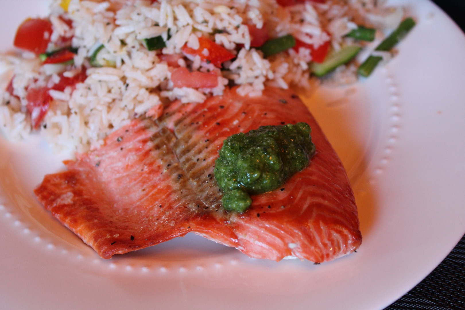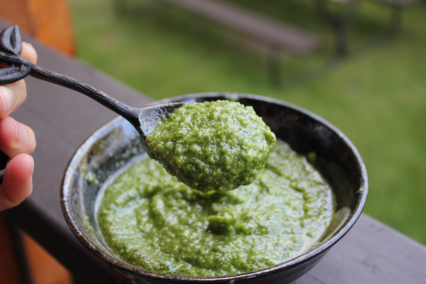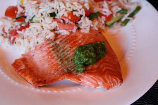Serve pesto over hot, cooked pasta or salmon and serve! Enjoy!