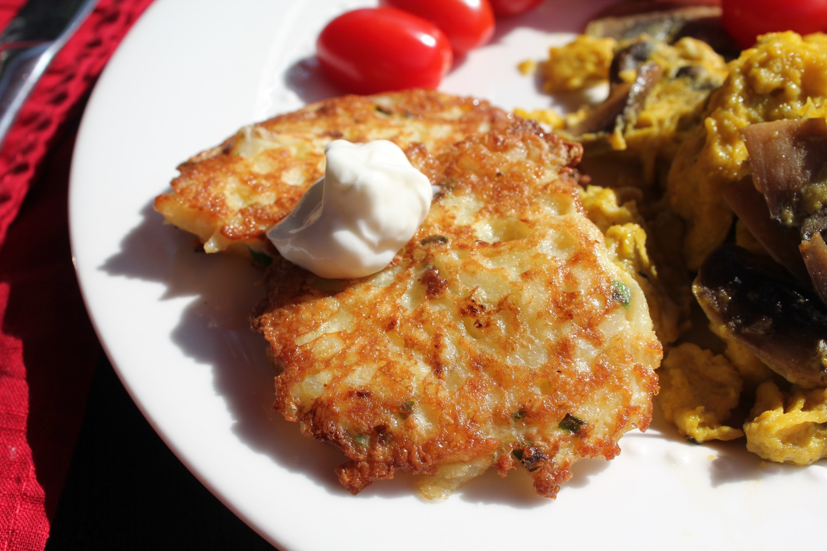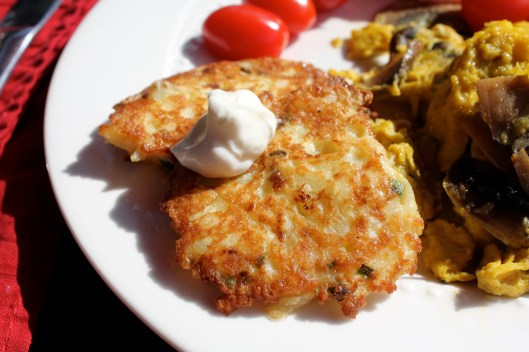 Enjoy with sour cream, apple sauce or ketchup. I always make a full batch because they are just as good warmed up later for a snack!