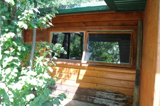 This is the master bedroom window. The window frame was stained the same color as the cabin and didn’t really stand out. The two bottom logs of the cabin were also black with mold (I had scrubbed off what I could before taking this picture).