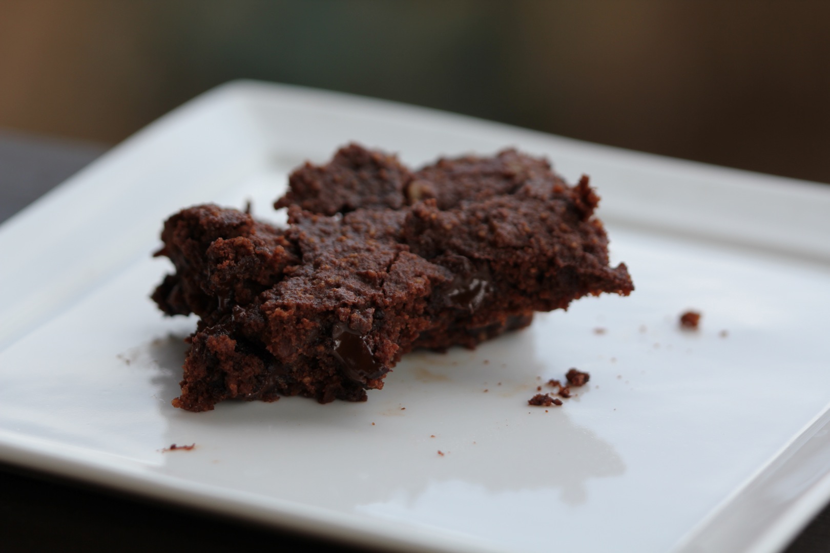 Preheat the oven to 350 degrees (F). In a medium saucepan over low heat, blend butter and cocoa powder. Remove from heat and let cool. In a separate bowl, mix the eggs, sugar and vanilla. Blend this into the cocoa mixture. Stir in the coconut flour until the batter is no longer lumpy. Add the chocolate chips if desired. (I also added 1/2 cup pecans.) Bake in a pre-greased 8×8 baking pan for about 30-35 minutes. Enjoy!