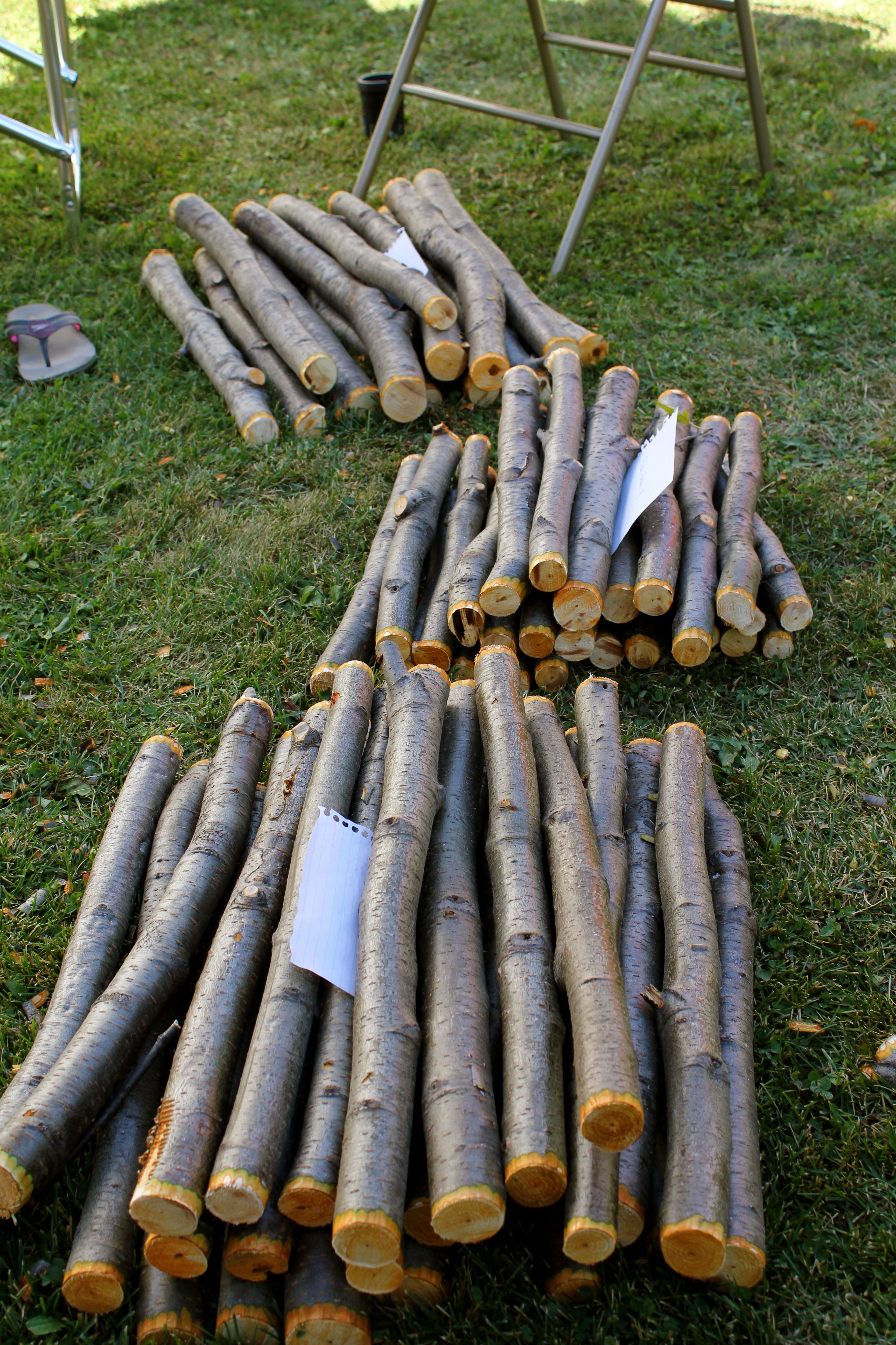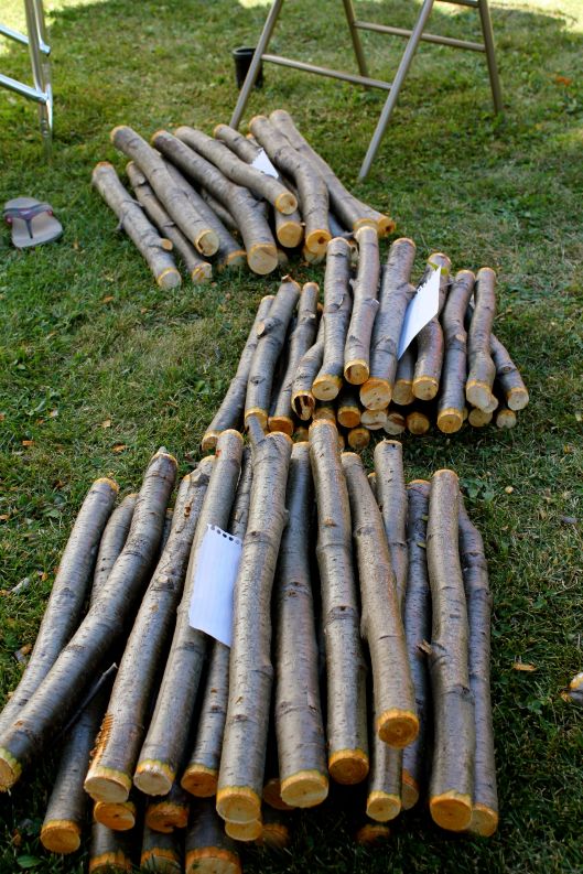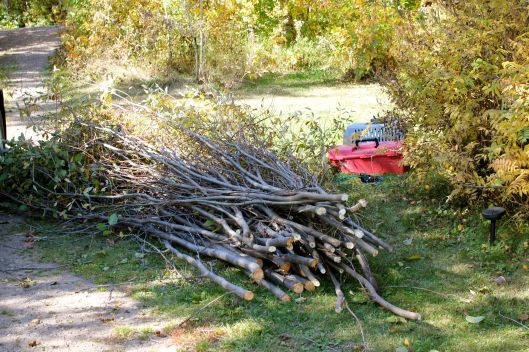 On Friday, Kathy and Wayne went into the bush and cut the willow. They ended up making another trip on Saturday and a quick trip today (Sunday) to get a few more branches. Here are some of the branches ready to go: