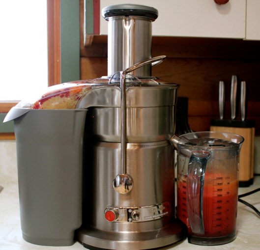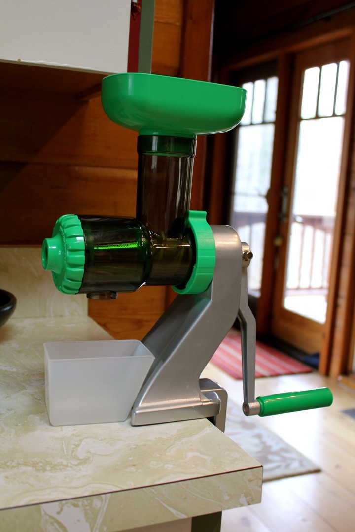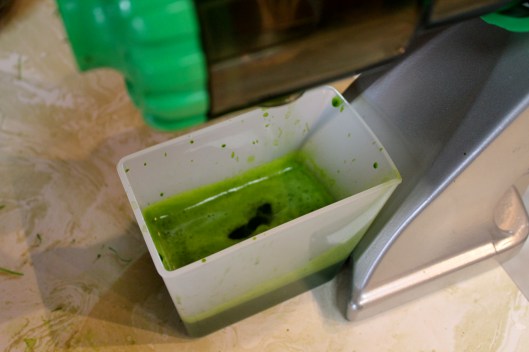 My new wheatgrass juicer arrived in the mail today and I was finally able to juice the two trays of wheatgrass that I had started a few weeks ago. It was an exciting day as it was my first time planting, juicing and drinking wheatgrass. I found the juice to be pleasing… vegetal and sweet and not bitter at all. I have read that some people do find it bitter and will juice an apple or orange along with it to sweeten it up. Cheers, everyone! To health, wellness and vitality…!!!