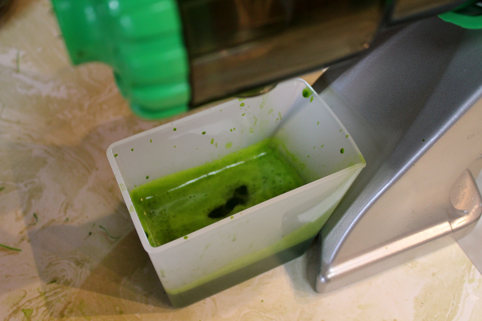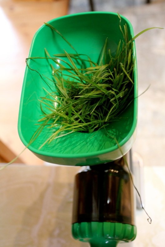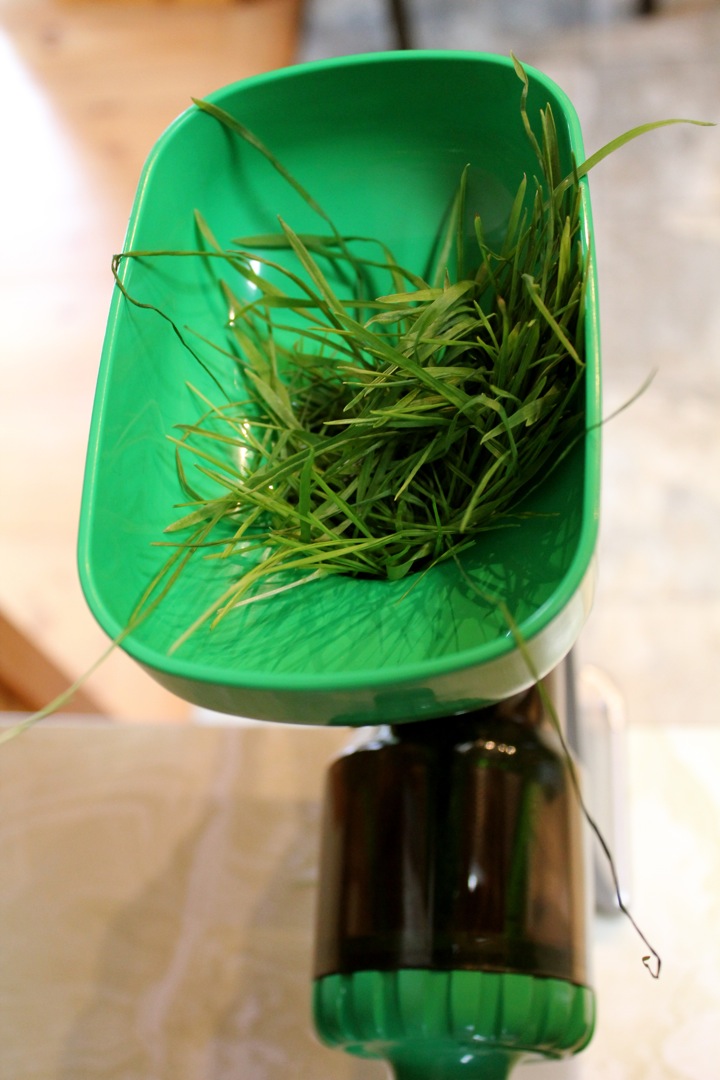 As wheatgrass is very fibrous and indigestible, we need to juice it to get at the goodness. The recommended way of consuming wheatgrass is 1 to 2 ounces of fresh wheatgrass juice daily, on it’s own. Drink it within 30 minutes of juicing and on an empty stomach. If you are growing your own wheatgrass at home, you will need a special wheatgrass juicer as the wheatgrass will clog up your regular juicer and the enzymes in the grass will get destroyed in the process. I am using a manual Tribest Z-Star manual juicer (pictured above), which acts more like a press and is not very expensive.