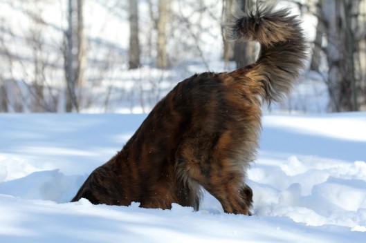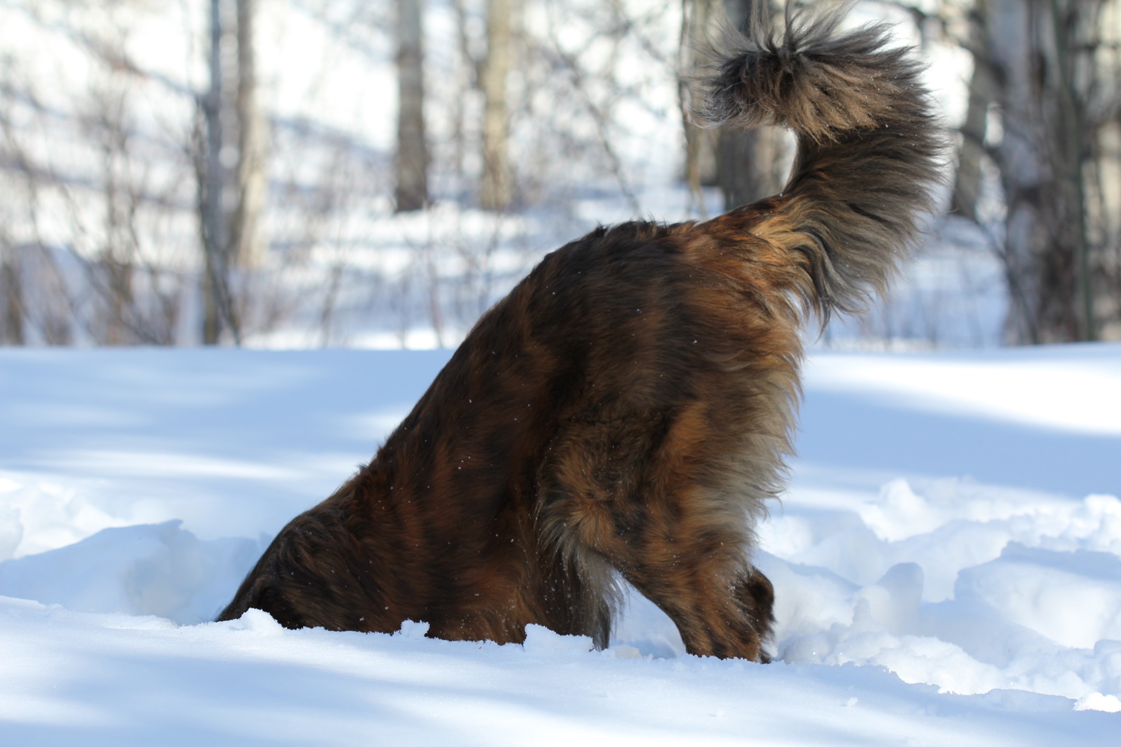 Lucy loves to hunt for mice and it doesn’t take her long to dig deep holes in the snow with her large paws while following a scent.