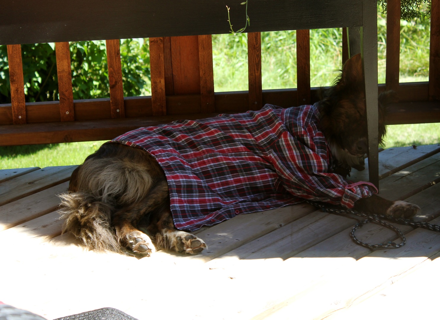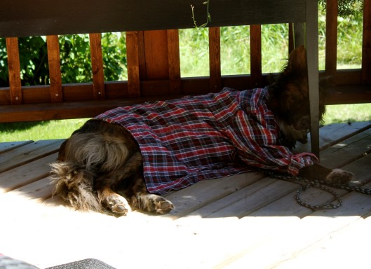 And finally, home again. Lucy spends the rest of the morning on the front deck, snoozing, following the sun, and watching the world go by.