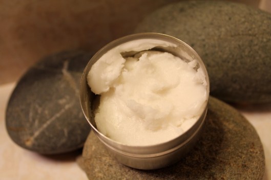 Another great recipe shared by my wonderful sister-in-law, Laurie. During my last visit we were chatting about homemade deodorants and she let me sample some of hers. It is so simple to make and more effective than the crystal I had been using, where I often had to reapply during the day. This deodorant is powerful, even on my days of heavy perspiration (large garden, moving wheel barrels of heavy dirt, hauling lumber for the raised beds…) it passed the test! I was able to sweat freely and naturally without a strong body odor. Instead, I enjoyed the delicate scent of coconut wafting from underneath my otherwise grimy arms. I bought the coconut oil (solid at room temperature) at Earth’s General Store in Edmonton but I have also seen it for sale at various Health Food Stores. Oh- and Laurie found the recipe on the Passionate Homemaking blog and there is even a video demonstration on how to make it.