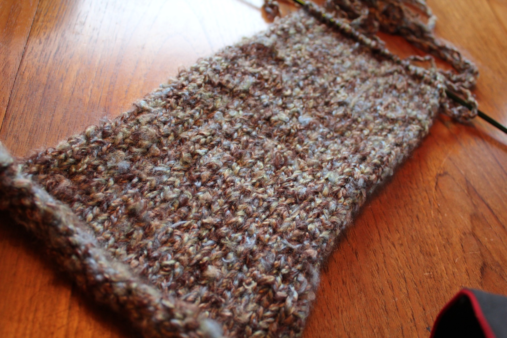 I love knitting! I love those quiet and deeply relaxing moments where I knit just a row or two before moving to another task. Or better yet, those long afternoons where I can sit by the fire and knit for a few good hours. I carry a large purse and always have a book with me wherever I go. Now I carry a book and my knitting…