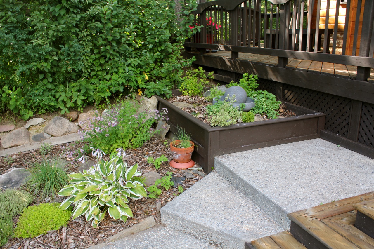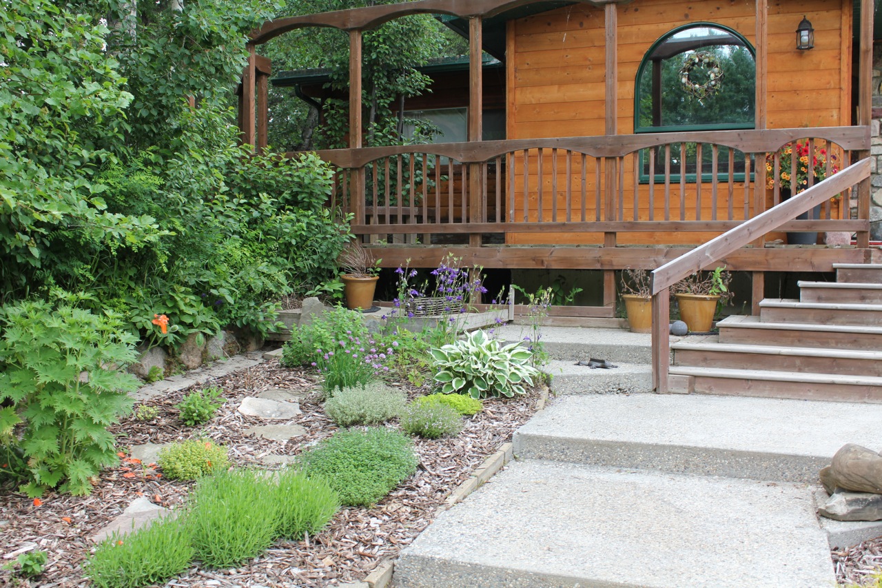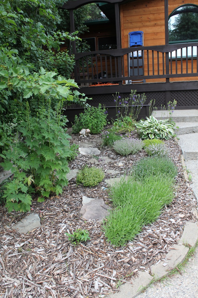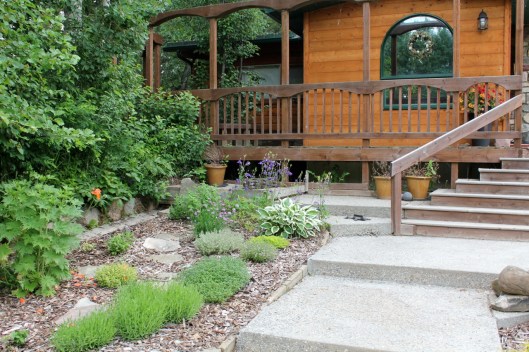 Once again, here is another ‘after’ shot. As I write this, the planter is now bursting with peppermint that is waiting to be harvested and dried for peppermint tea. What was once a neglected, uninspiring spot in the garden is now productive and beautiful and adds to the ‘curb appeal’ of the cabin. The best part is that the new additions look as though they have always been there!