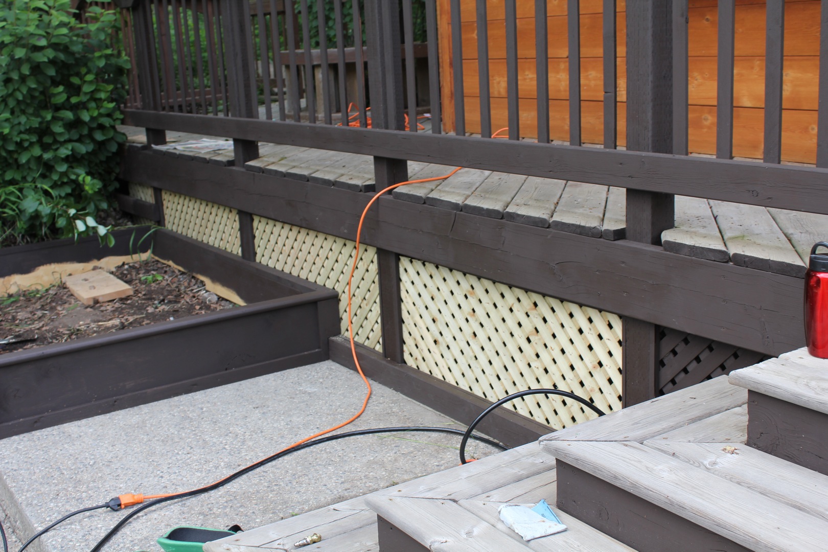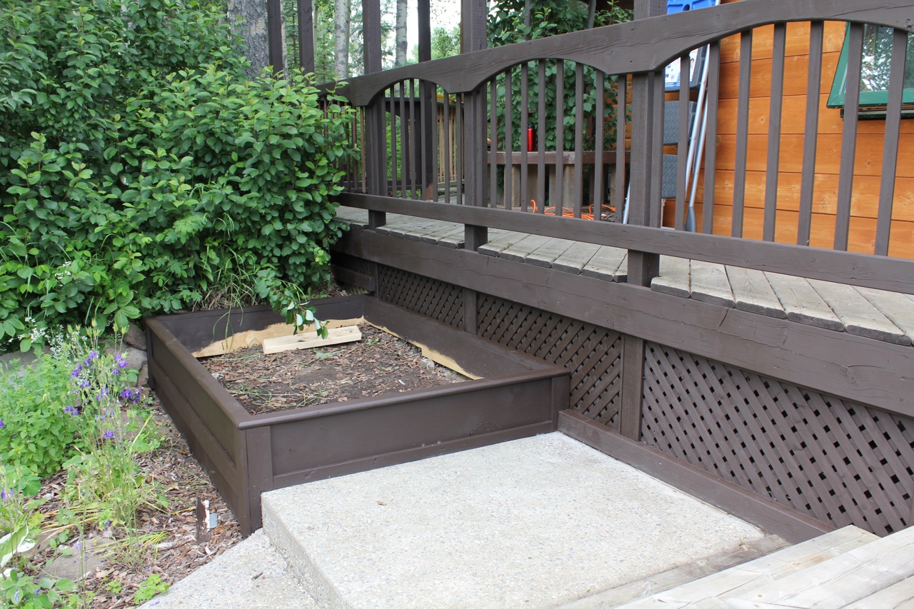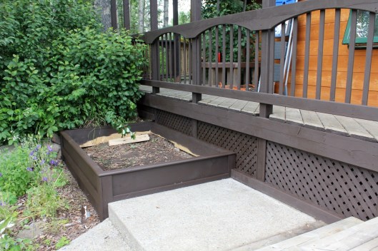 Once the planter box was finished he decided to take it a step further and address the empty space under the deck with some of the left over trellis from the patio project…