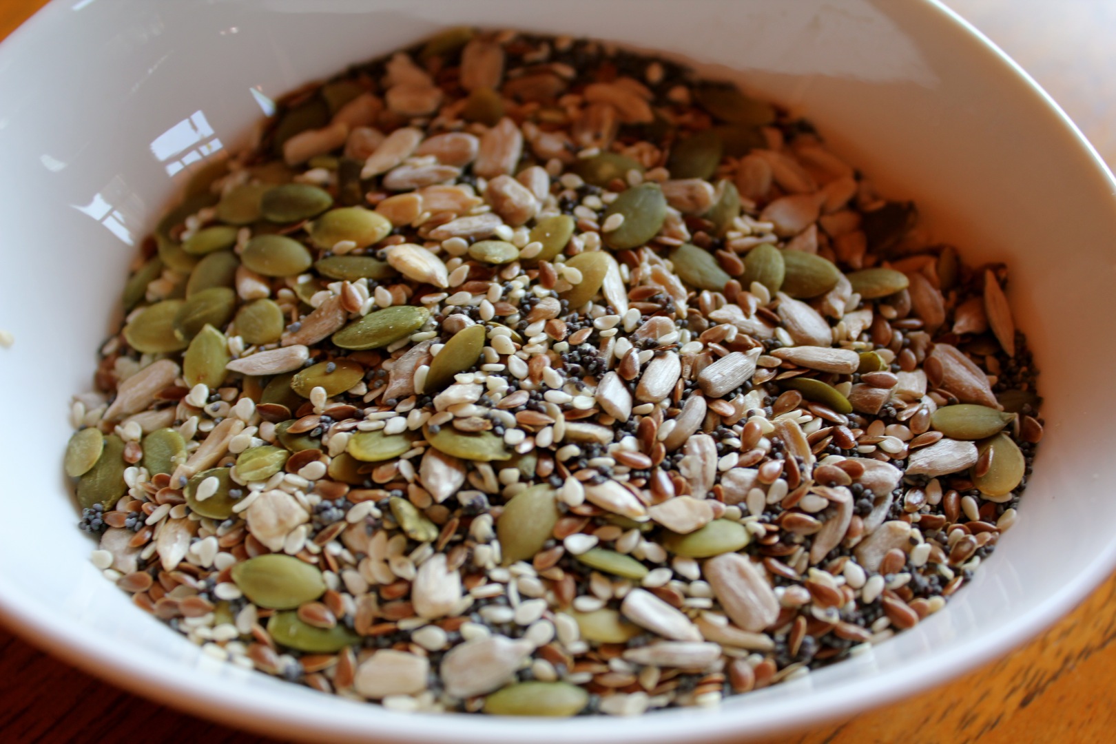 2-½ tablespoon each of sunflower seeds, pumpkin seeds, sesame seeds, poppy seeds and flax seeds.