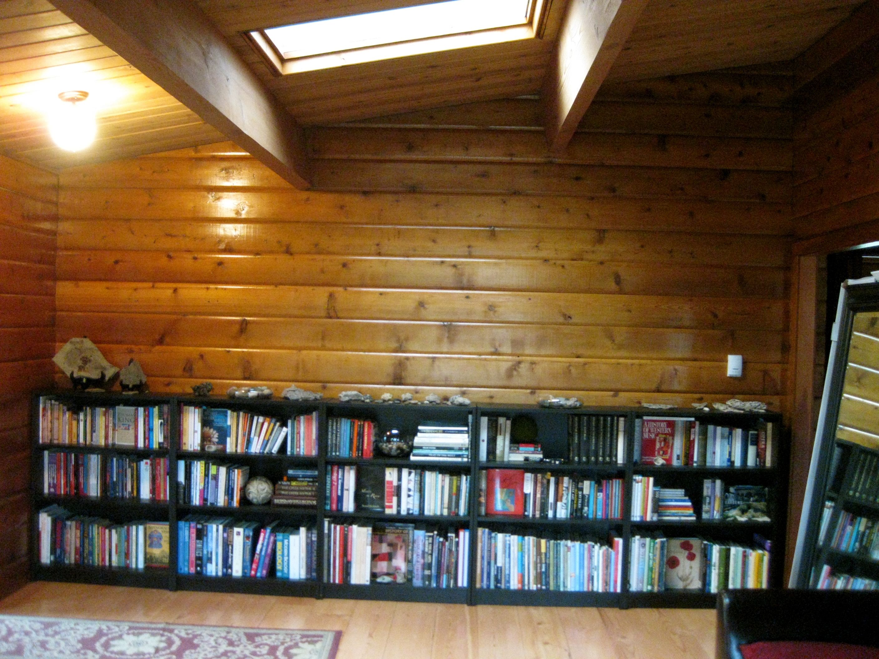 The same is true for Lucy and I here at cabinorganic. We live in a pan-abode cedar cabin. This means that the entire cabin is made from cedar that has been milled into 3″x6″ double tongue and groove timbers. (Note: other homes may be made from 4″x6″ timbers.) All of the walls and ceilings (except for the semi-finished basement) is cedar. Even the flooring in the living room is wood and comes from timber that was, in another life, a grain elevator in Oyan, Alberta (an agricultural center near the border of Alberta and Saskatchewan) and now has been remilled and repurposed into flooring.
