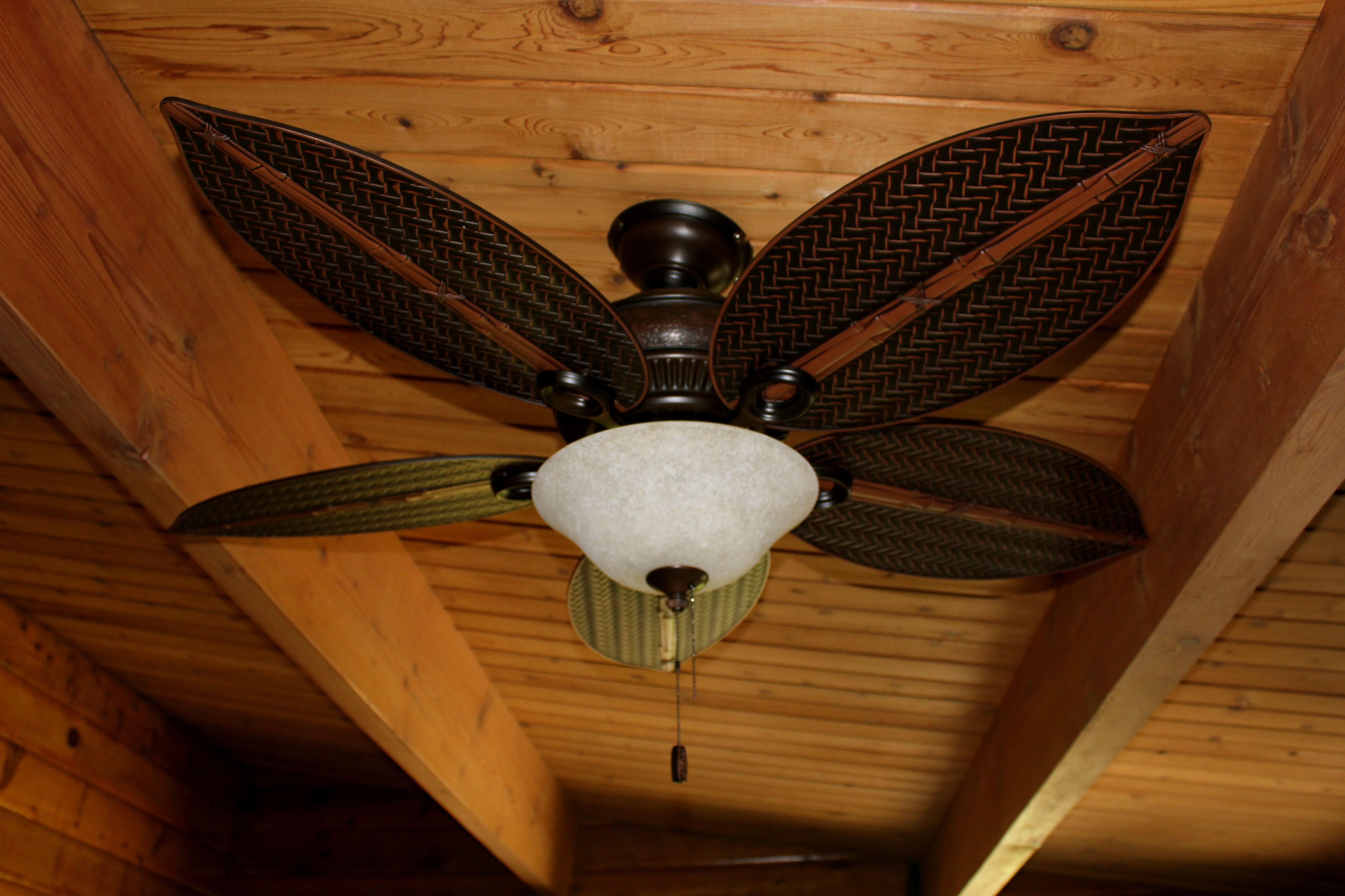 Here is the ceiling fan that my dad and sister installed while they were visiting a few weeks ago. The previous outdated fan was brass with the same color wood as the ceiling. The new darker ceiling fan is fresh and classy, and it really stands out from the ceiling instead of blending into it: