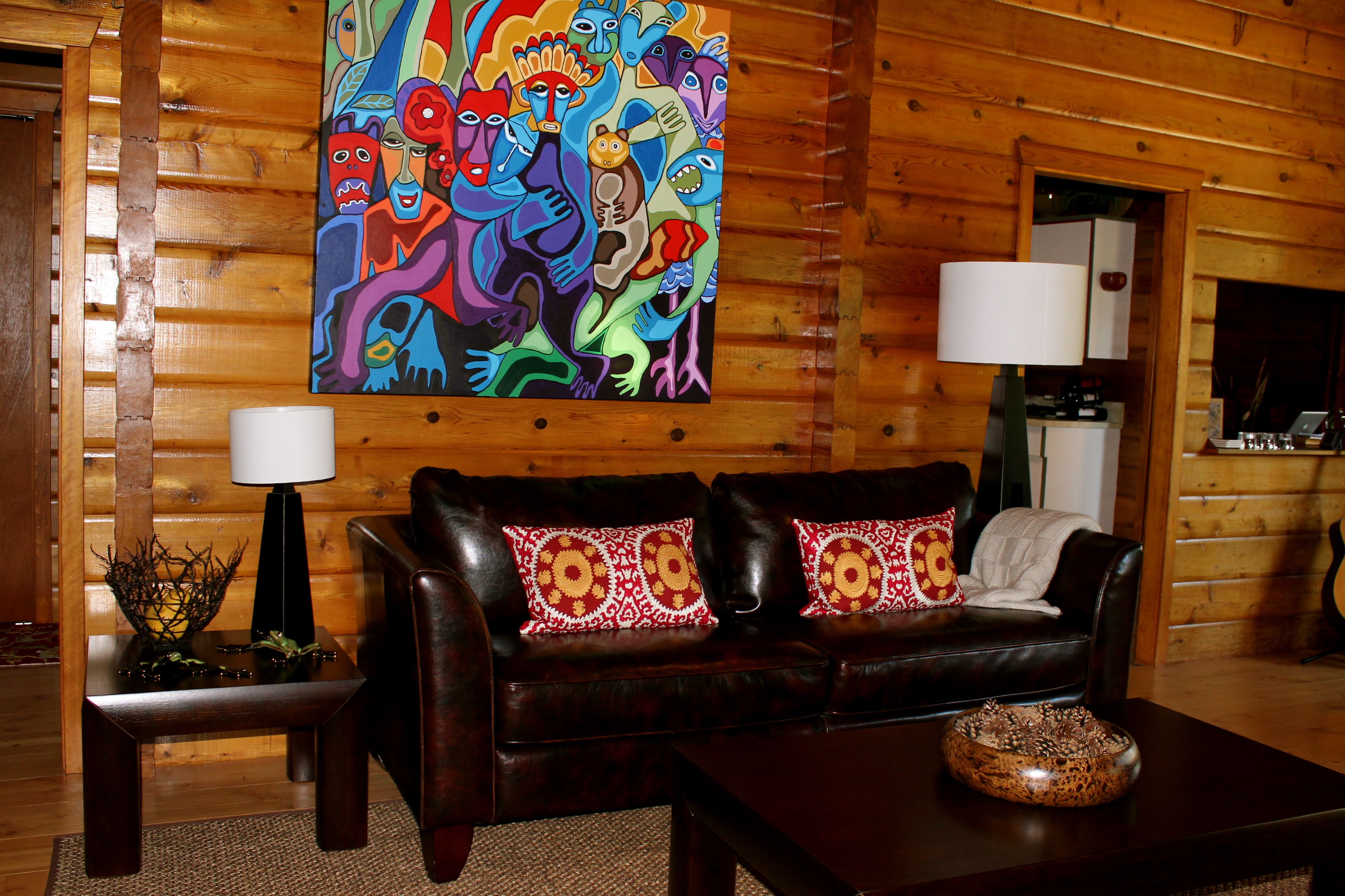 Ask anyone who lives, or has lived in, a log cabin and they will all tell you you the same thing… ‘It is very dark inside.’ Especially during our Alberta winters when we get precious little daylight. Unless you are lucky enough to have entire walls of windows, the wooden interior seems to absorb all of the light, leaving any interior designer with the same challenge: how can we bring more light in here?