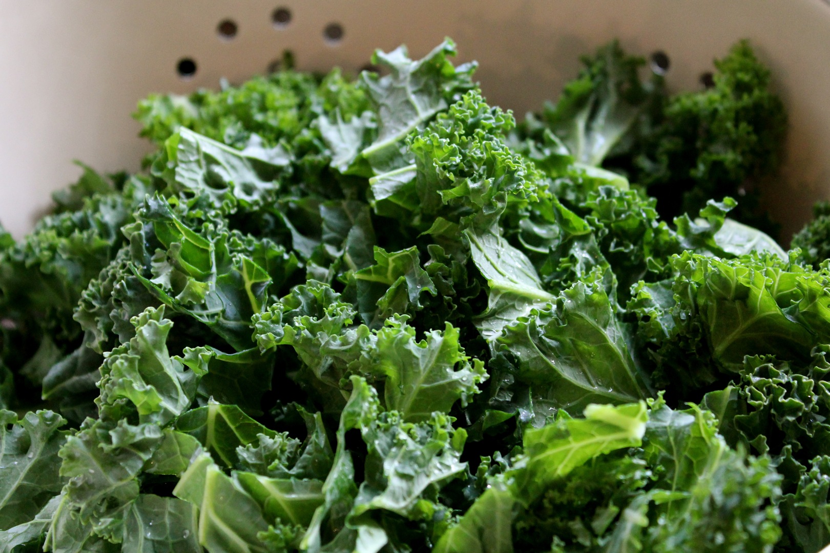 Trim away the rough ends of the kale and chop into bite-sized pieces.