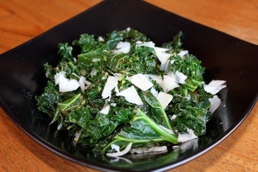 I had a nice bunch of kale to cook with and wanted to try something new. The addition of the lemon and anchovies add a nice kick of flavor to this dish. I served this over brown rice and topped it with a bit of shaved parmesan cheese to make this a fully satisfying meal.