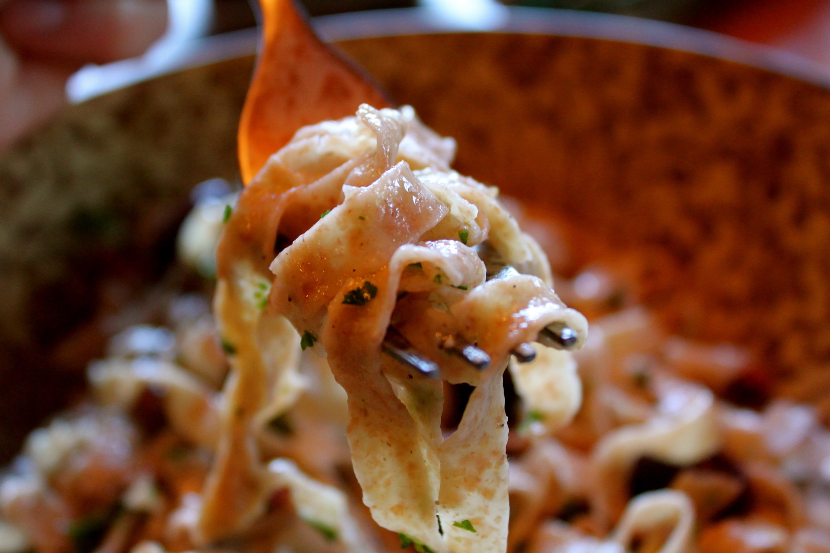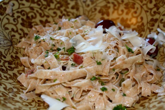 fettucini, flour, garlic, gremolada, hand made pasta, kitchenaide mixer, lemon, milled flour, pasta, pasta attachment, spelt, spelt flour